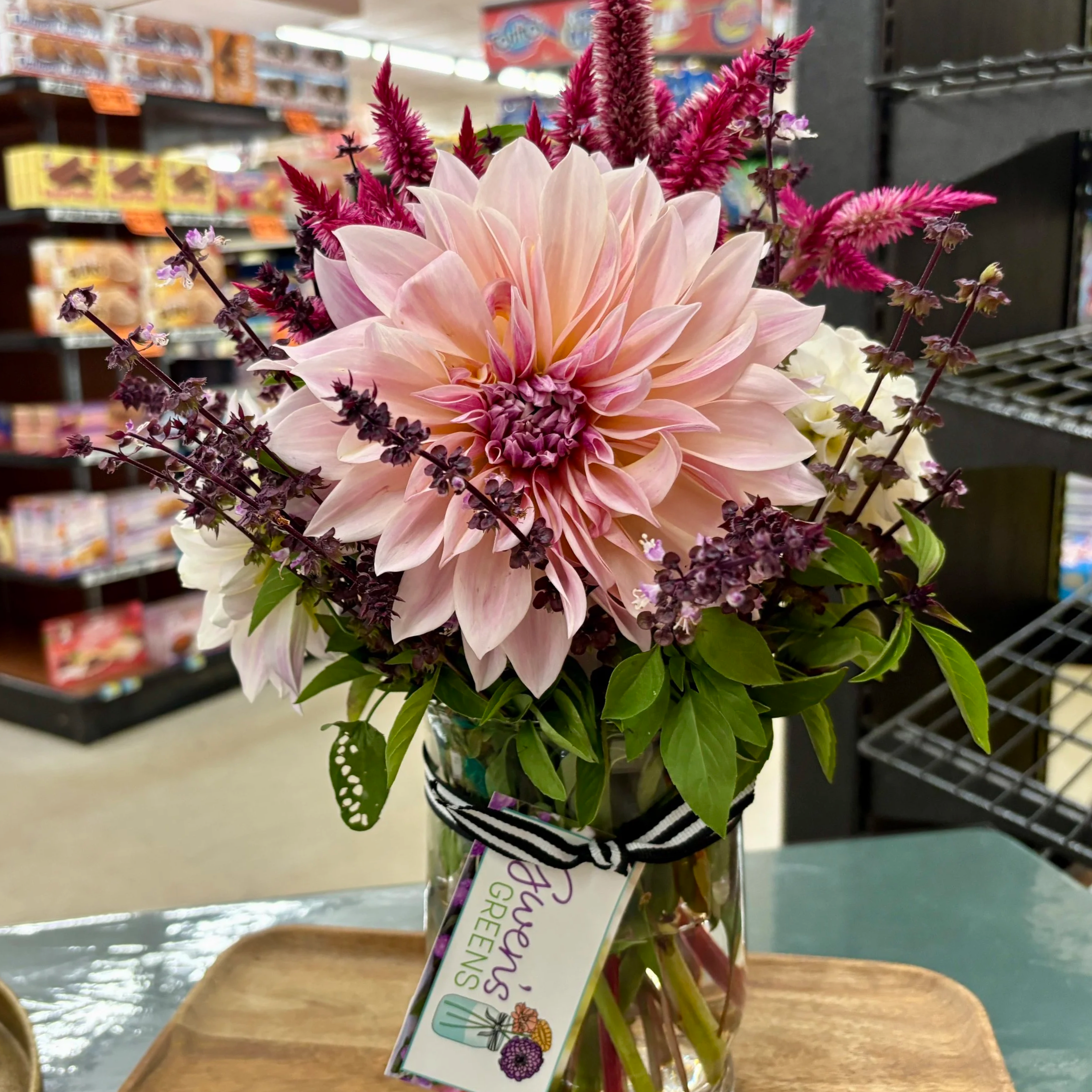 — A Returning CustomerGwen's floral arrangements are so unique as she blends wildflowers with bulb flowers and, unbelievably, flowers from her vegetable patch to create something that is exquisite, exotic, and beautiful. What shows up on my doorstep each week is always thrilling.